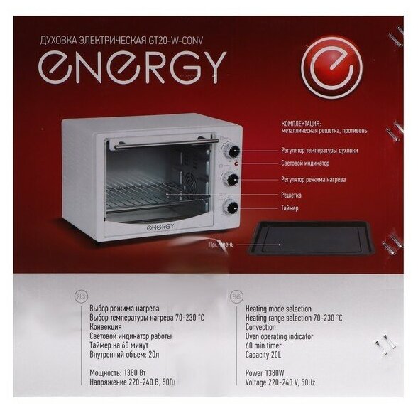 Духовка электрическая "ENERGY" GT20-W-CONV 20 Л 1380 ВТ, конвекция (белый) (1) интересное: