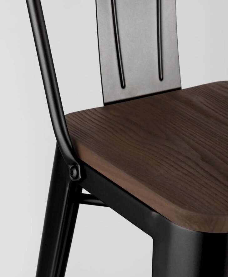 Стул барный TOLIX WOOD со спинкой черный глянцевый