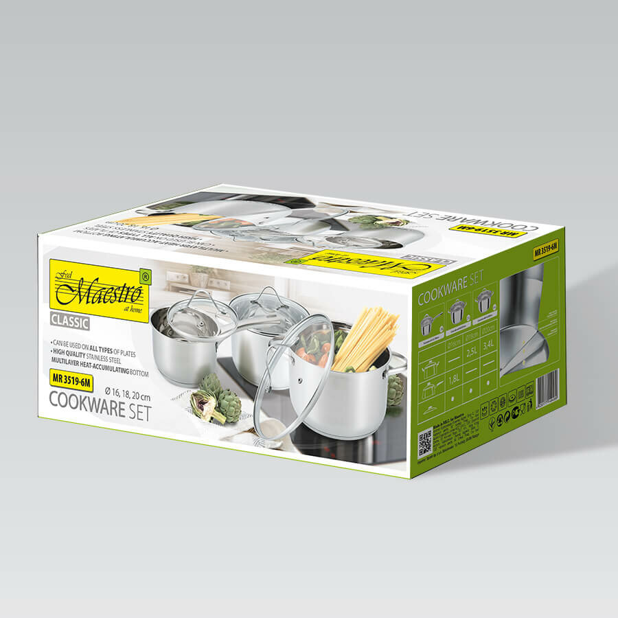 Купить Набор кастрюль Maestro MR-3519-6M ковш 1.8л, кастрюли 2.5/3.4л из 6 предметов