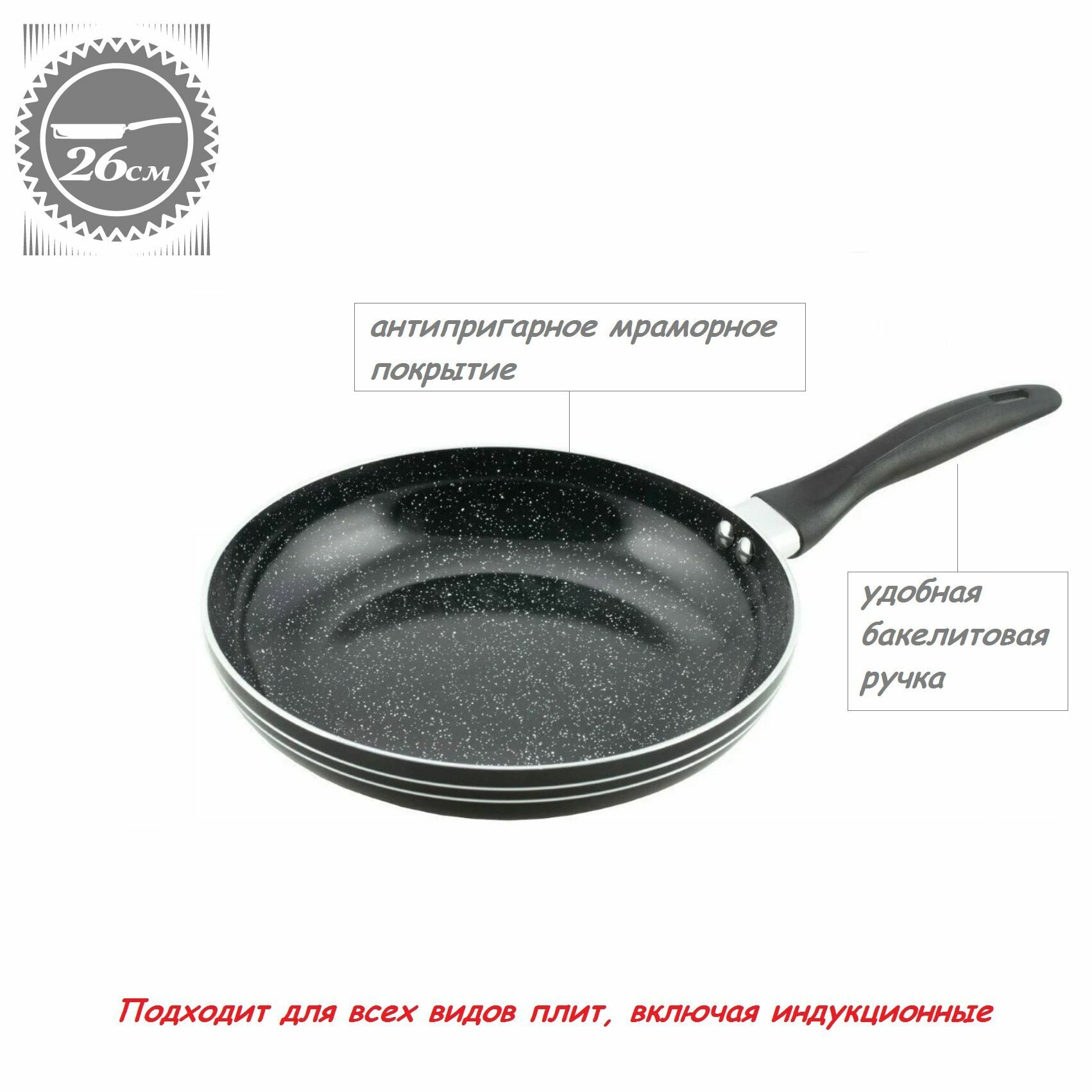 Сковорода 26 см с антипригарным 3-х слойным мраморным покрытием Edenberg для газовой электрической и индукционной плиты