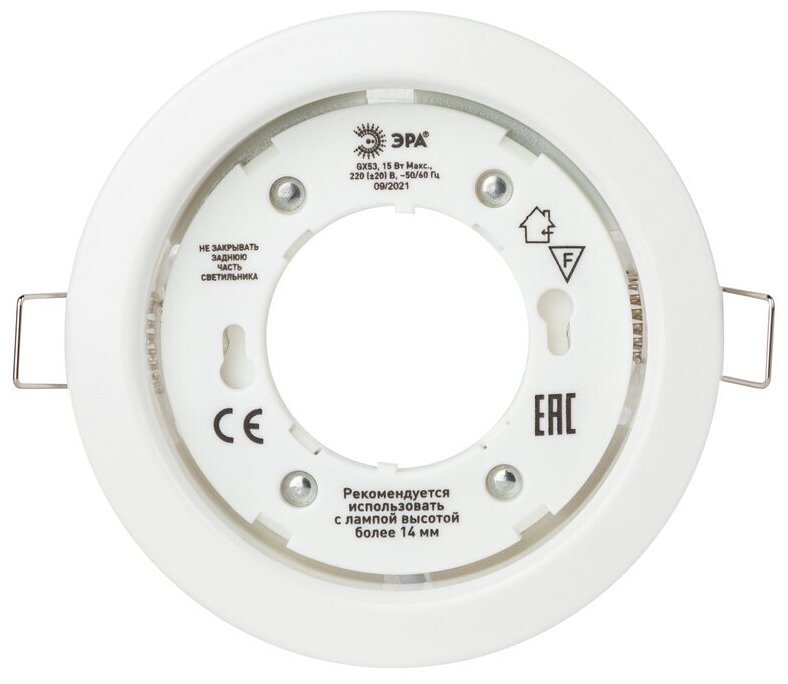 ЭРА GX53 KL35 WH/1 светильник встр. d106х38мм (врез.d90мм) с монтажным кольцом белый ИУ 3404 (арт. 808295)