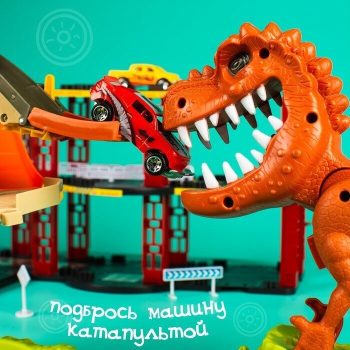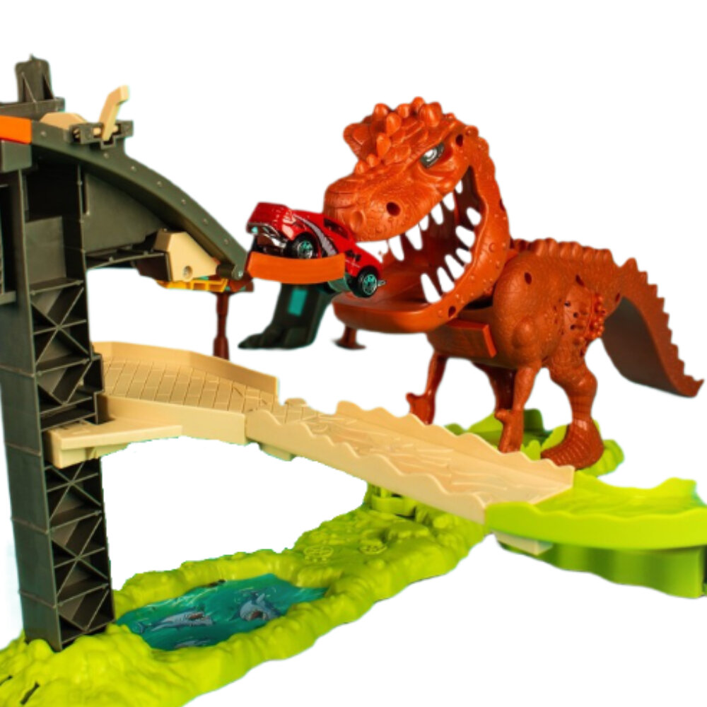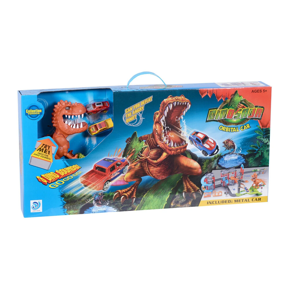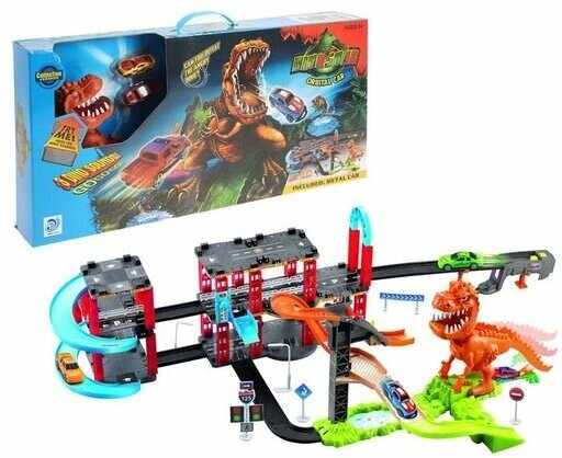 Купить Трек Дино с двумя гоночными машинками, аксессуарами, двумя трамплинами и дорожными знаками, 8899-92