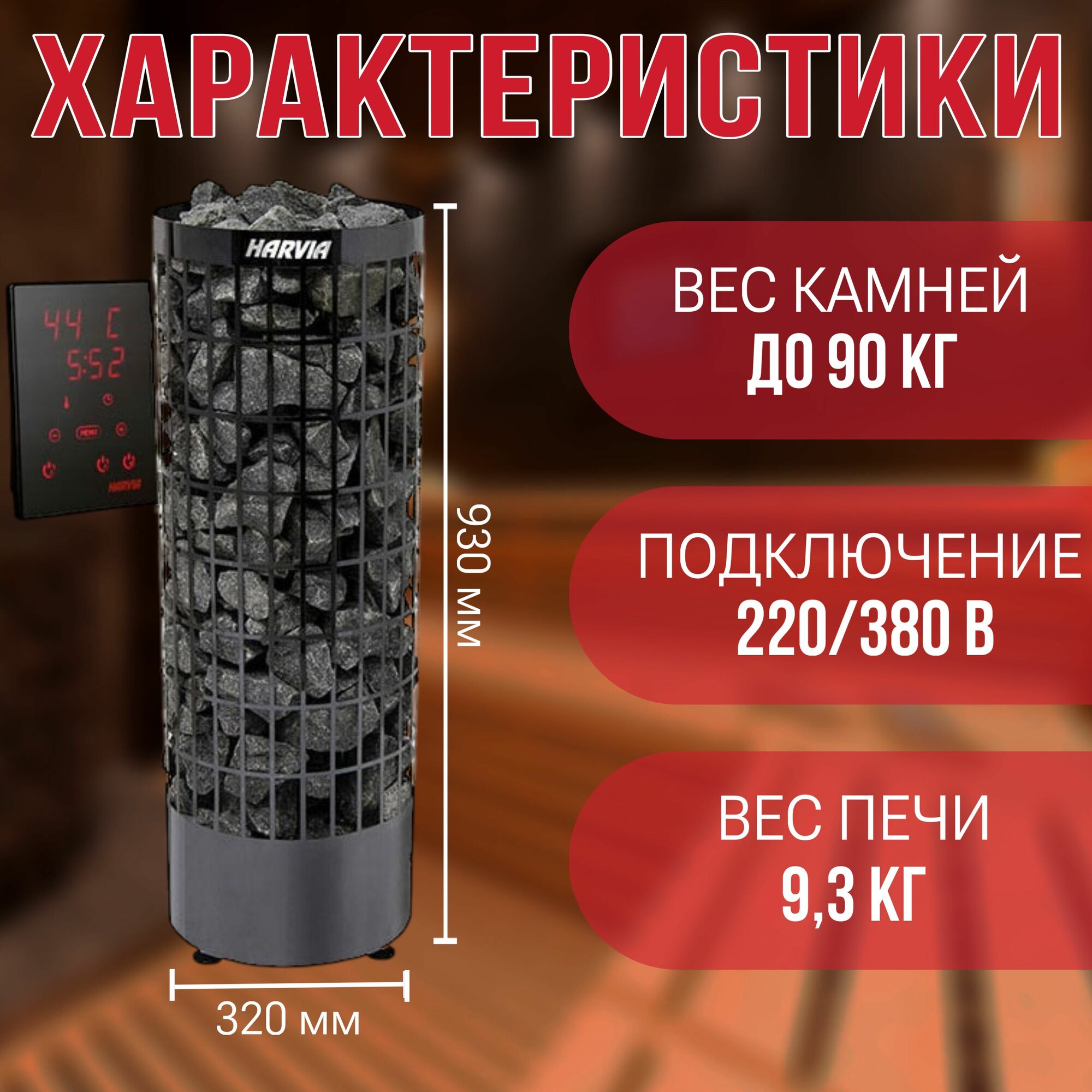СохранитьПечь для сауны Harvia Cilindro PC 70 XE Black (черная, с выносным пультом) интересное: