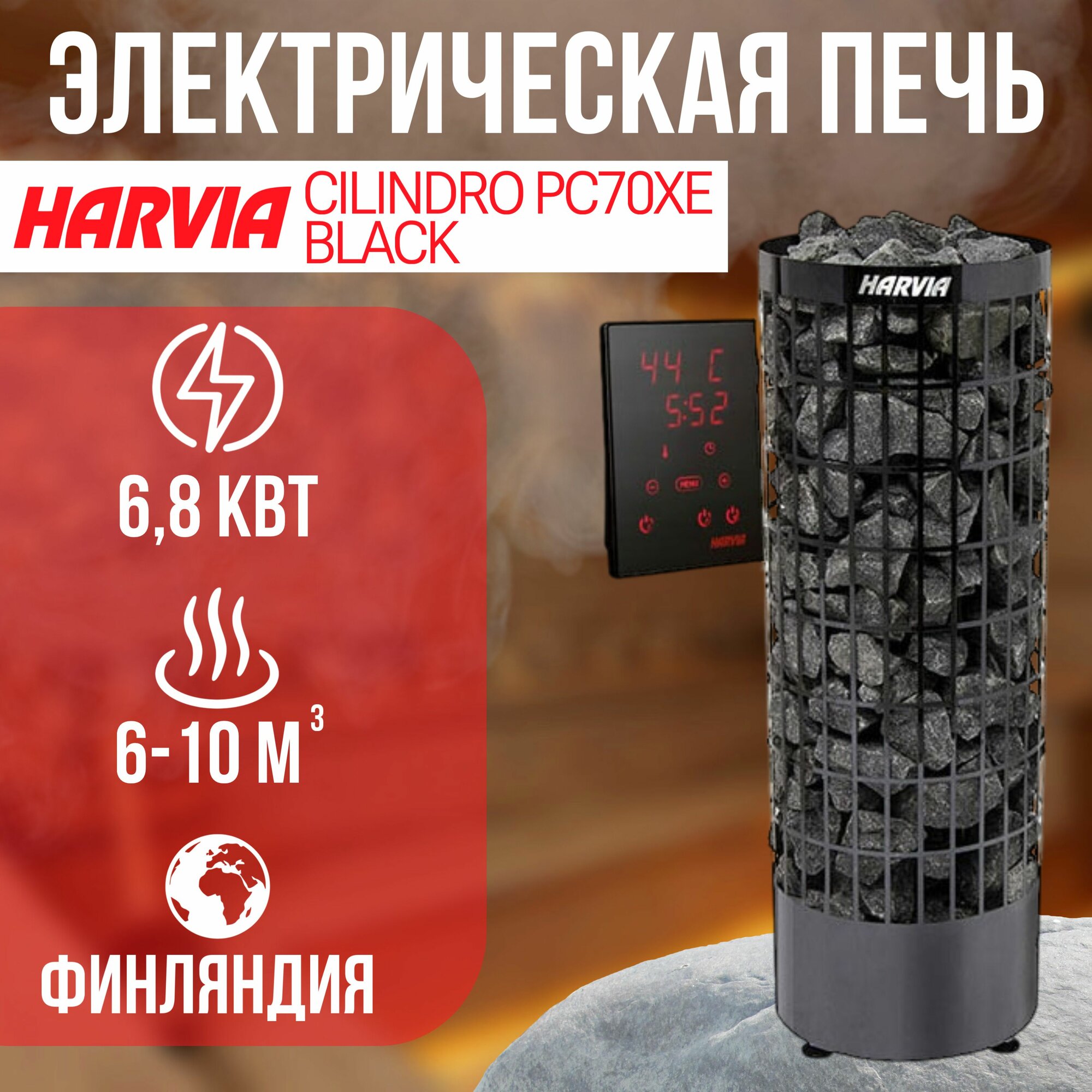 Купить Печь для сауны Harvia Cilindro PC 70 XE Black (черная, с выносным пультом)