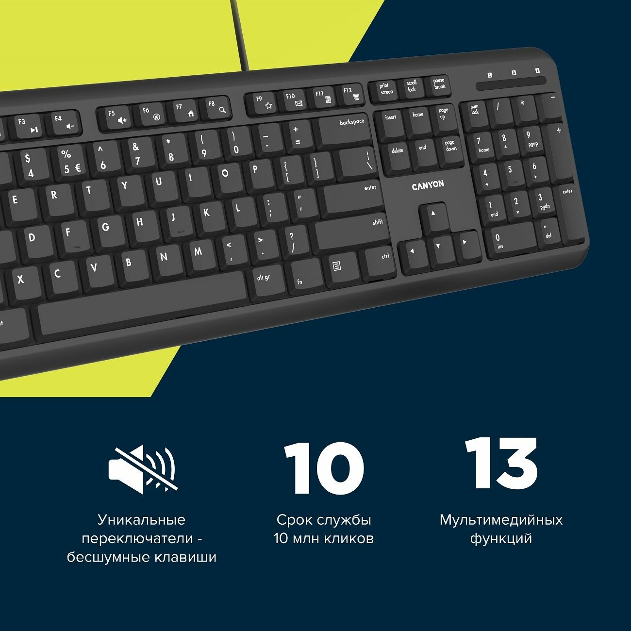 Проводная клавиатура Canyon CNS-HKB02-RU, черный