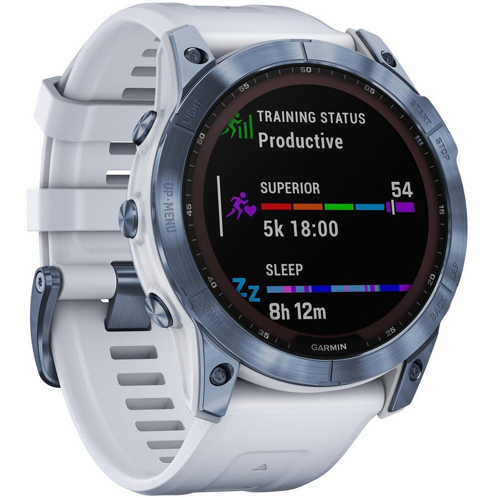 Часы Garmin FENIX 7X Sapphire Solar титановый синий минерал DLC с белым ремешком