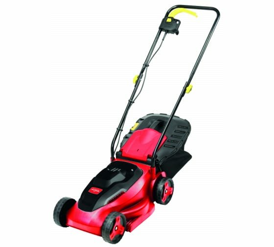 | Плюсы: | простота управления, легкая косилка, наличие травосборника. |