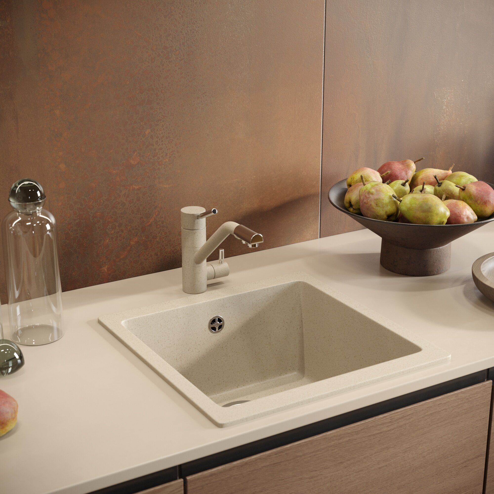 Мойка кухонная Domaci Солерно EMQ-1455.Р берилл, 45х45 см, встраиваемая, квадратная, бежевая, кварцевая интересное: