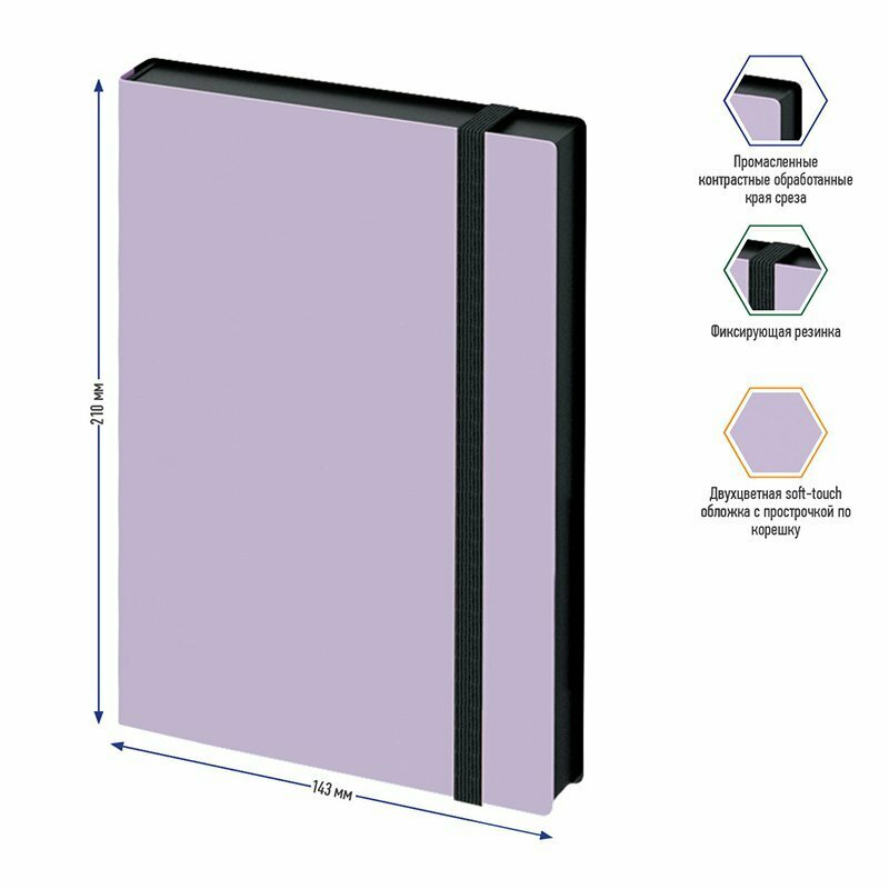 Комплект 2 шт, Ежедневник недатированный, А5, 136л, кожзам, Berlingo "Instinct", черный/лаванда, с резинкой