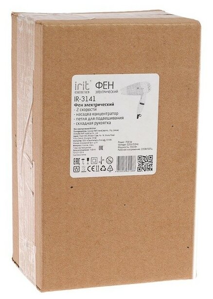 Фен Irit IR-3141, 700 Вт, 2 скорости, 2 темп. режима, концентратор, складная ручка, розовый (1 шт.) интересное: