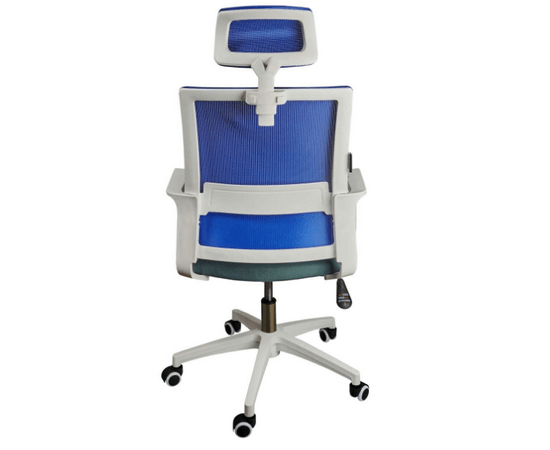 Офисное кресло для персонала NORDEN БИТ / Белый пластик / Синяя сетка / Темно-серая ткань интересное: