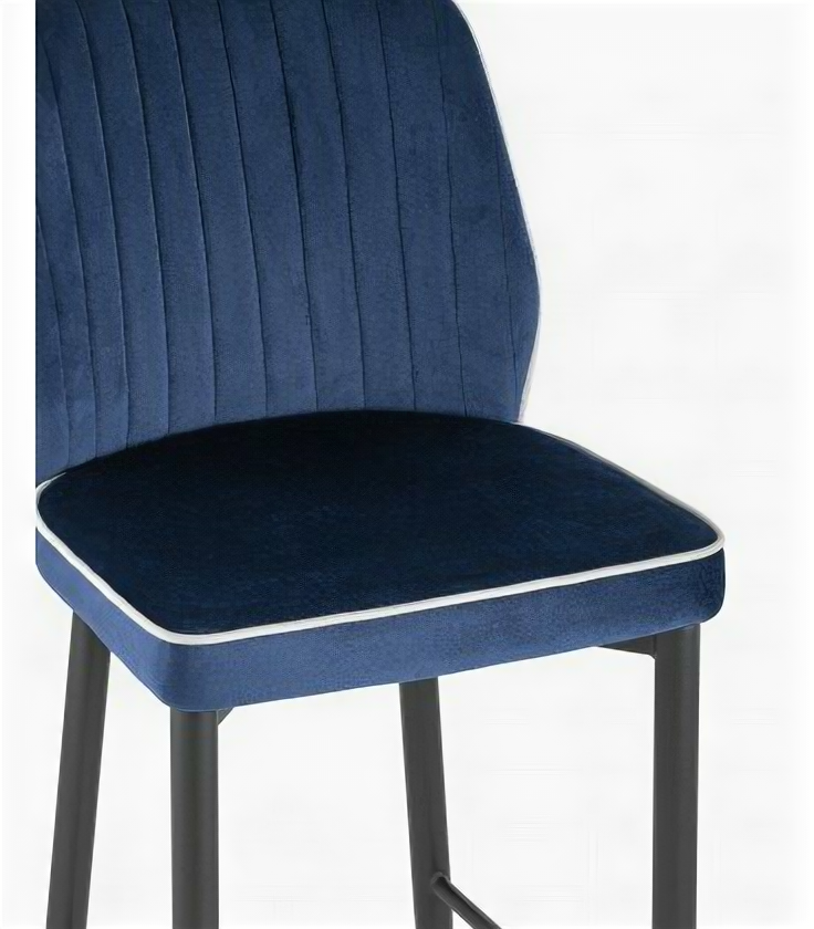 Стул полубарный STOOL GROUP Лоренс синий обивка велюр ножки металл черный с подножкой