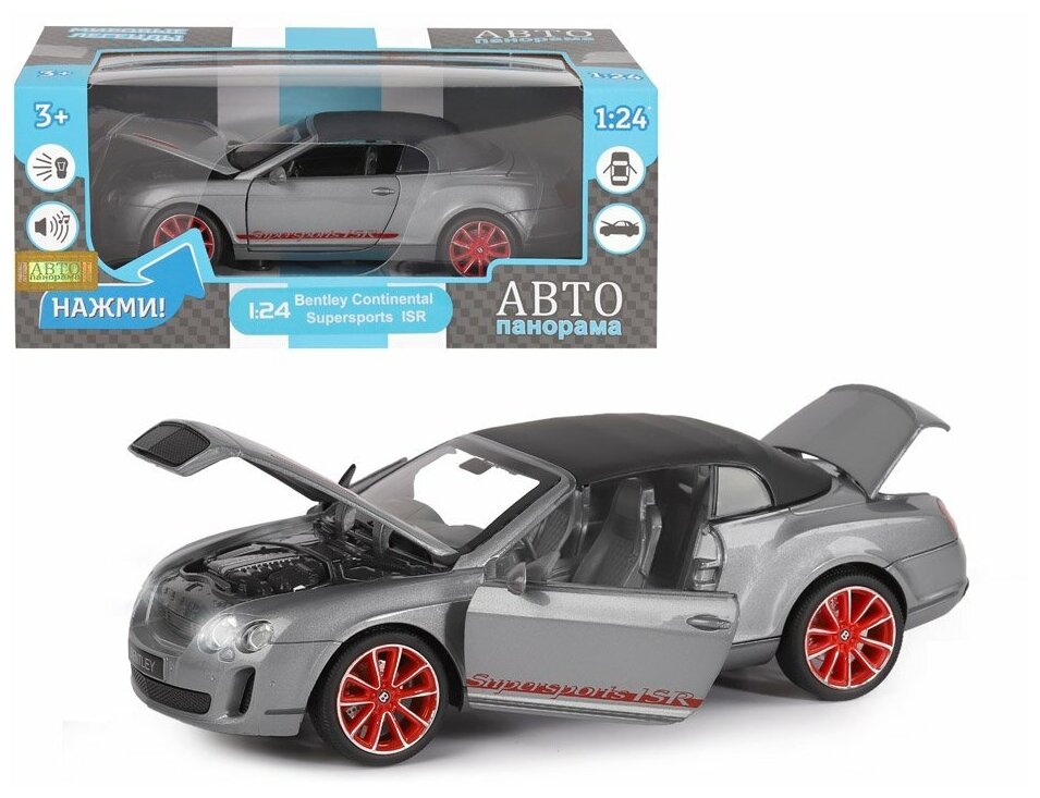 Модель машины Автопанорама 1:24 Bentley Continental Supersports ISR, серый металлик, открываются двери, капот и багажник, свет, звук