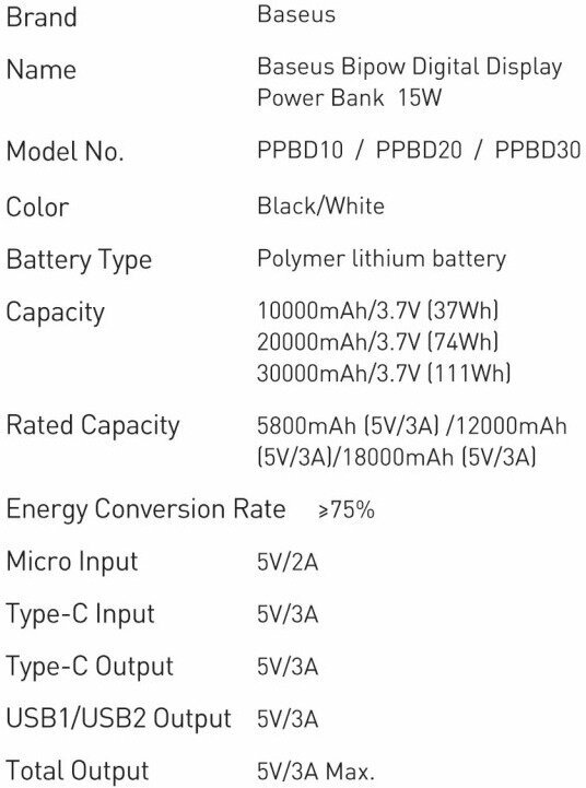 Ниже Вы можете прочитать отзывы на Внешний аккумулятор Baseus Bipow Digital Display Power bank 30000mAh (PPBD050201), ознакомится с подробными характеристиками, посмотреть интересные обзоры и фотографии на Внешний аккумулятор Baseus Bipow Digital Display Power bank 30000mAh (PPBD050201).