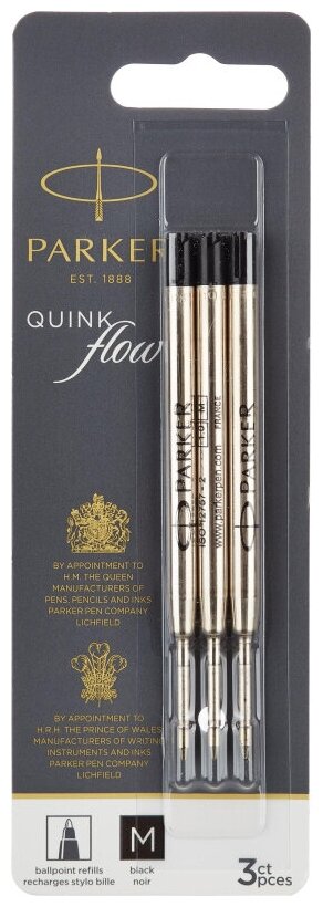 Купить Набор стержней 3шт д/шарик ручки Parker QuinkFlow, черные, средние 1.0мм, блистер