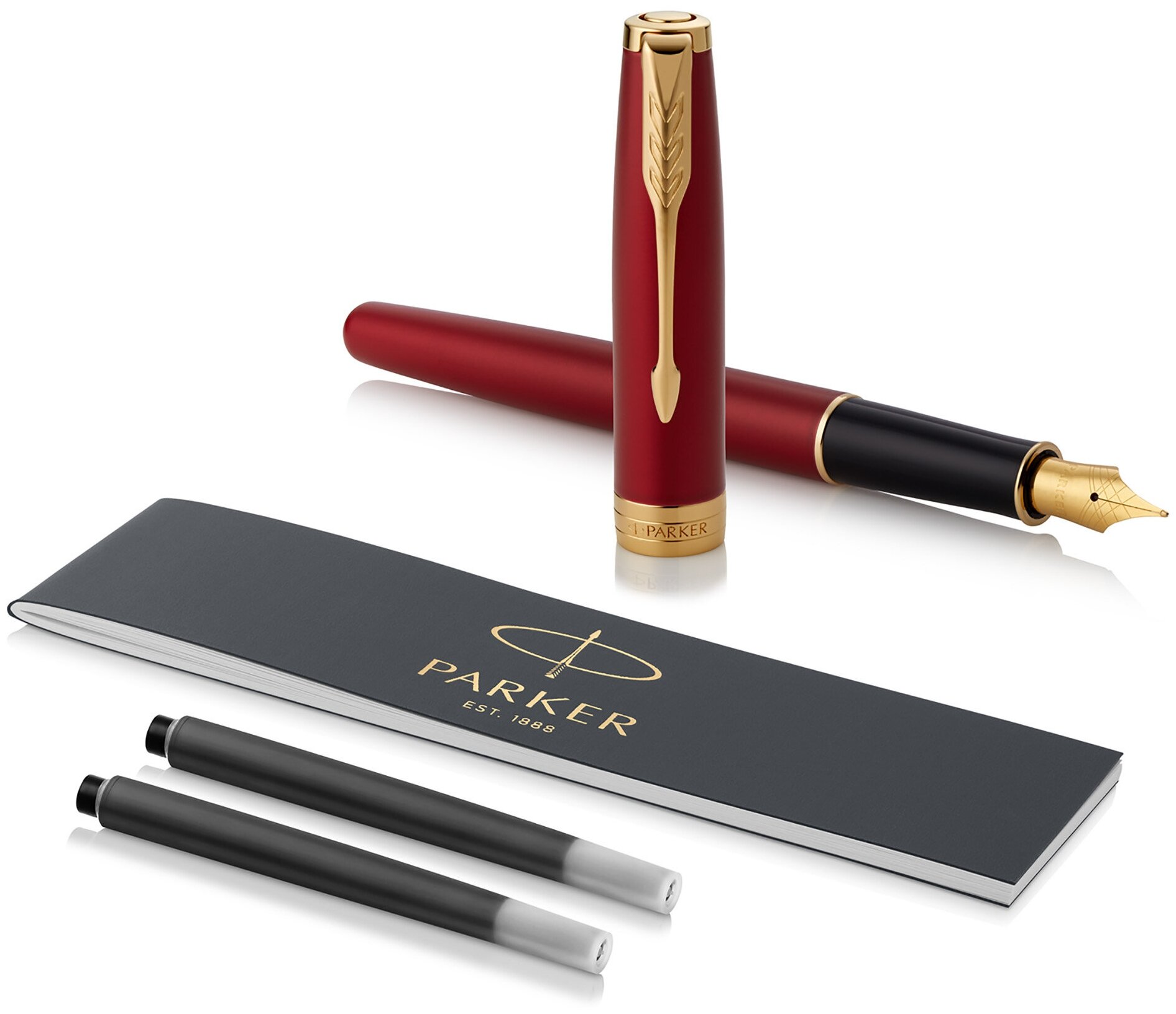 Ручка перьевая Parker "Sonnet Sand Blasted Metal & Red Lacquer", черная, 0,8 мм, подарочная упаковка (2146736)