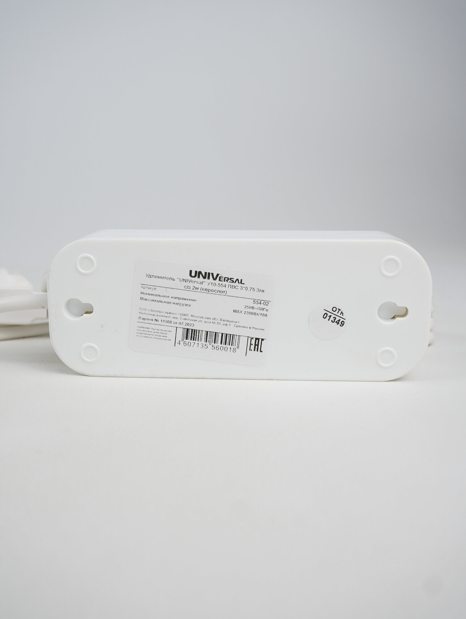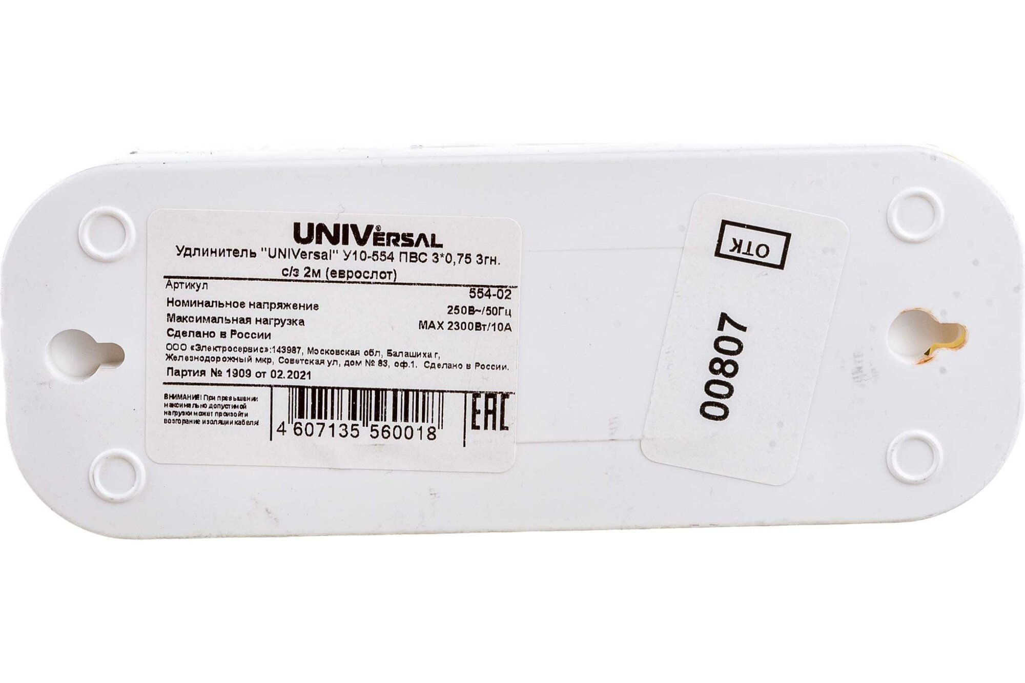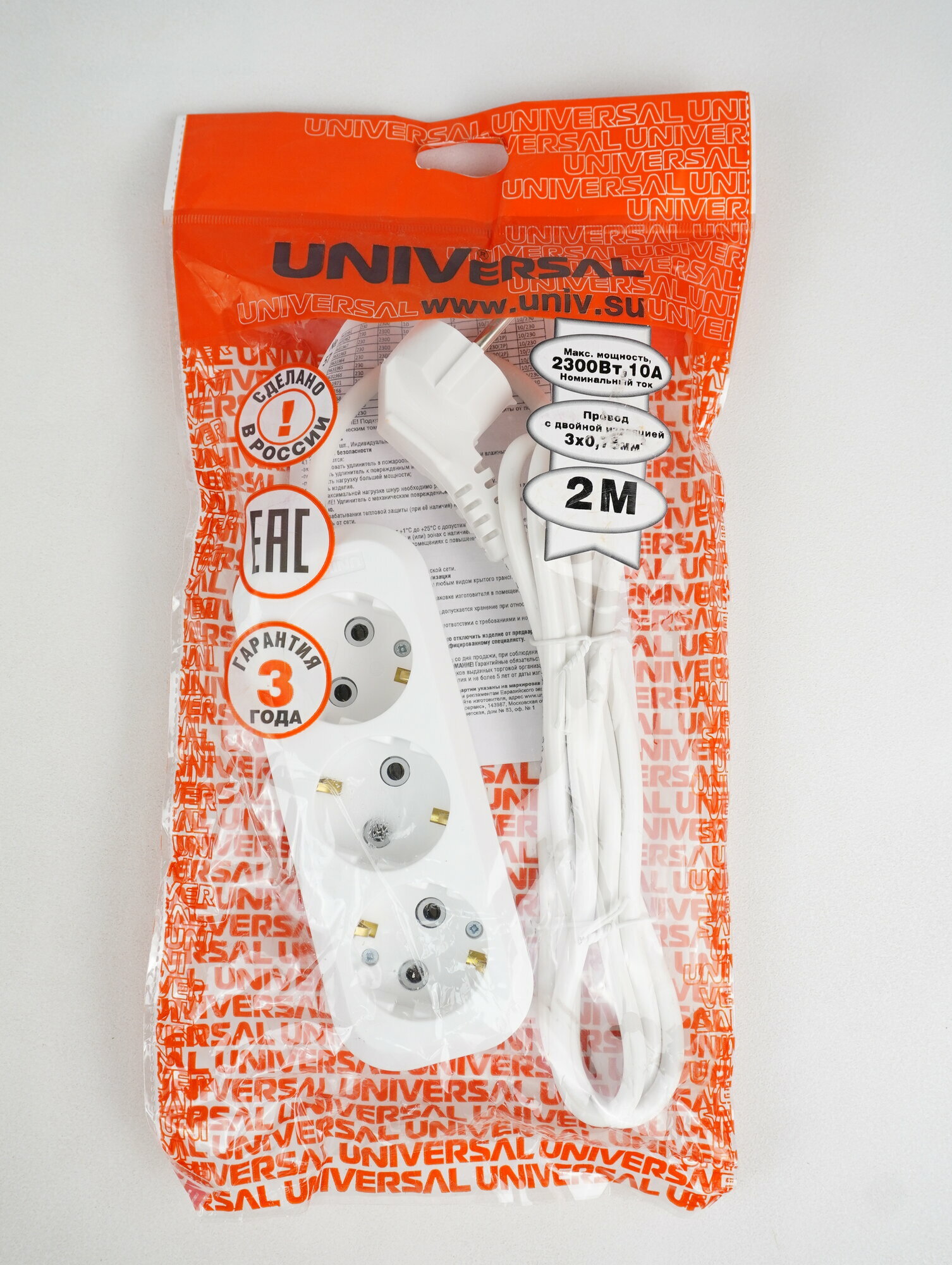 UNIVersal сетевой удлинитель ПВС 3х0.75 3 розетка 2 м 10А земля У10-554 554-02