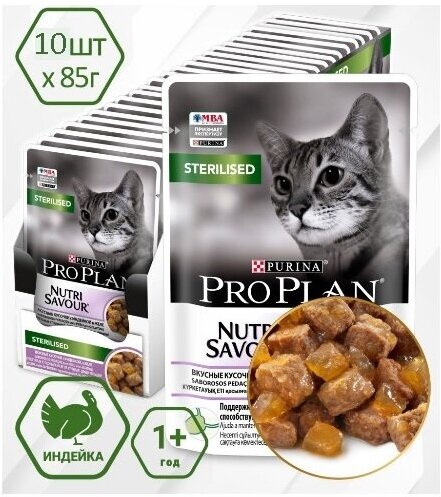 Влажный корм для стерилизованных кошек Pro Plan Nutrisavour , с индейкой 10 шт. х 85 г (кусочки в желе)