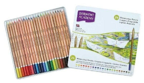 Набор акварельных карандашей Derwent Academy Watercolour, металл пенал, 24 цвета