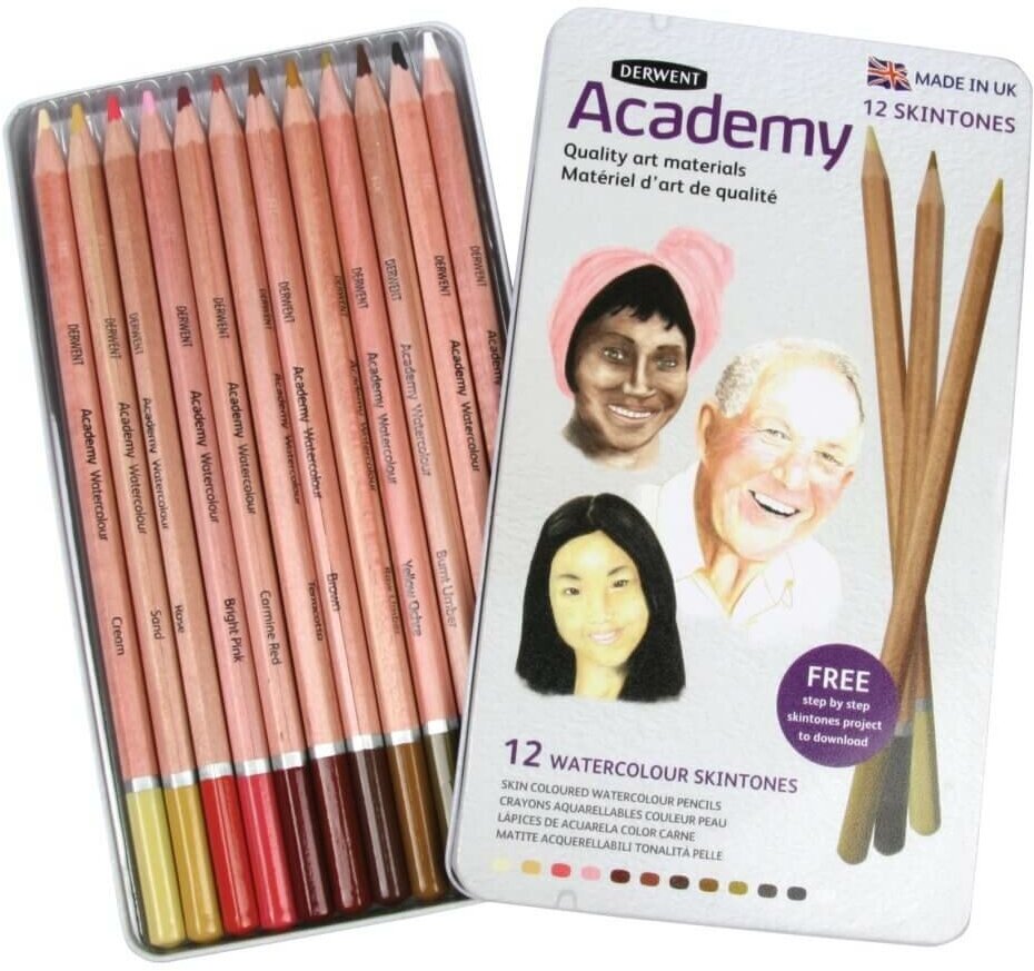 Купить Акварельные карандаши Derwent Academy, тона кожи, 12 шт