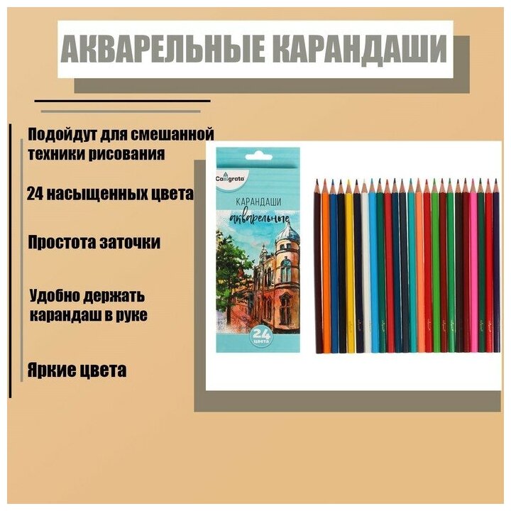 Купить Карандаши акварельные 24 цвета, заточенные, в картонной коробке (1 шт.)