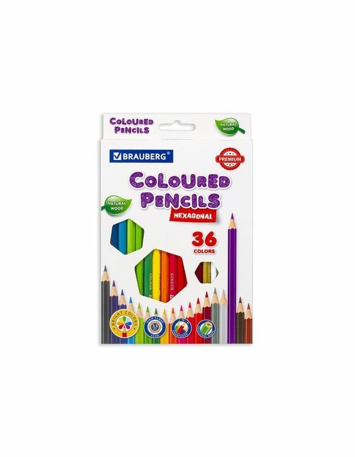 Купить Карандаши цветные BRAUBERG PREMIUM, 36 цветов, шестигранные, грифель мягкий 3,3 мм, 181659
