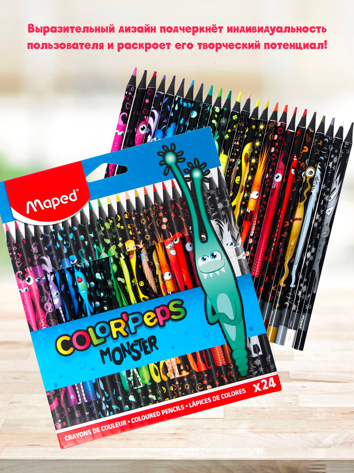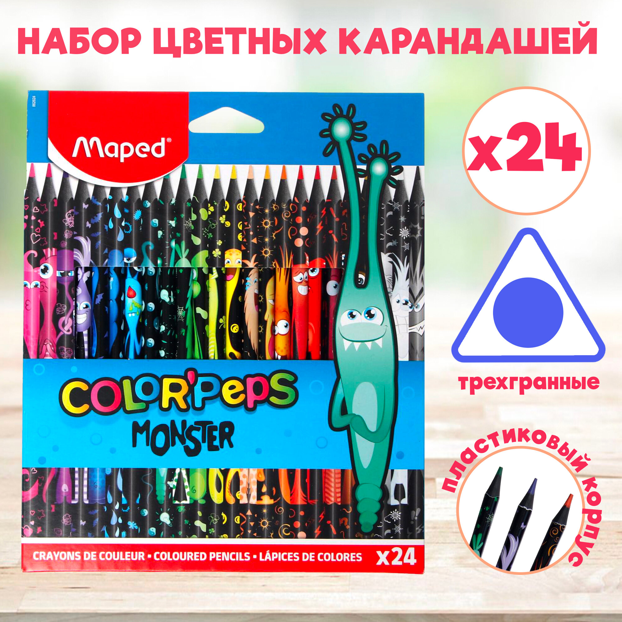 Купить Карандаши цветные 24 цвета Maped Color'Peps Monster (L=175мм, 3гр) (862624)