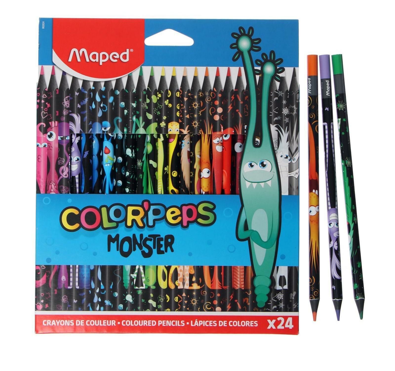 Карандаши цветные Maped "COLOR PEP'S Black Monster", набор 24 цвета, пластиковый корпус, 862624