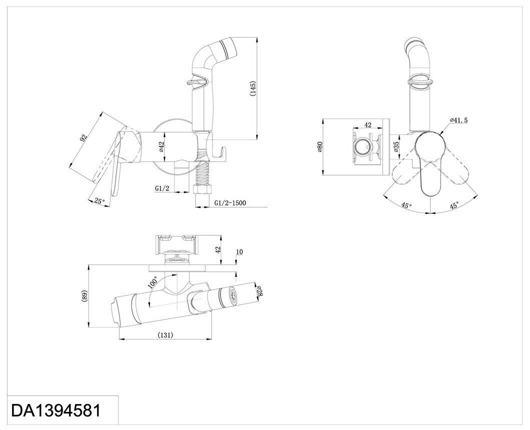 Гигиенический душ D&K DA1394581 RheinMarx Смеситель с гигиеническим душем, хром