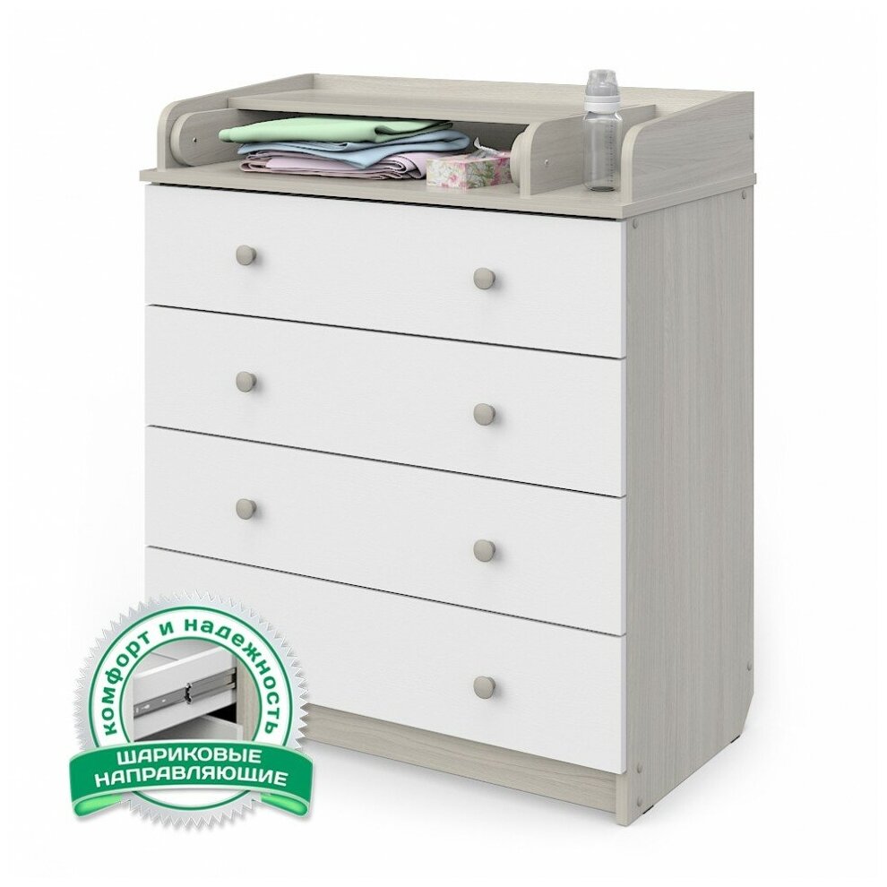 Комод пеленальный Атон Сириус-2, 80 х 94 см, 4 ящика, ясень шимо светлый/белый