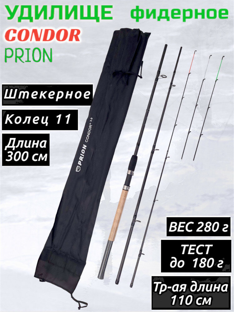 Удилище фидерное Condor Prion Feeder длина 3,00 м, тест 180 гр carbon, штекер интересное: