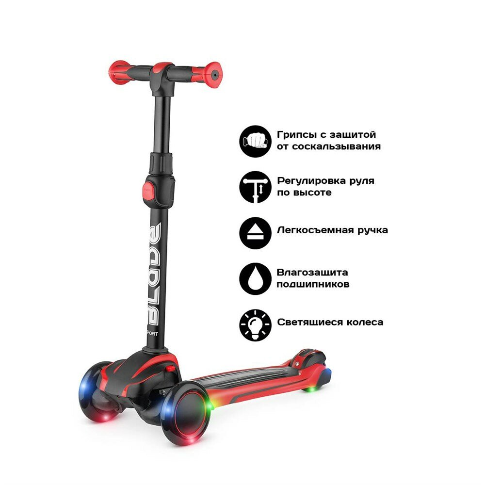 Самокат детский трехколесный Blade Sport V1 черно-красный со светящимися колесами