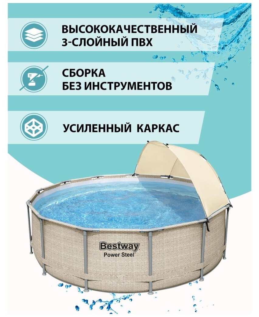 Бассейн каркасный Bestway, 396х107 см, Power Steel, 5614V, фильтр-насос, лестница, тент, 11133 л, поплавок-дозатор