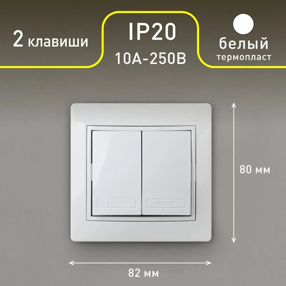 Выключатель двухклавишный (комплект 2 шт.), 10А-250В, IP20, СУ, слоновая кость