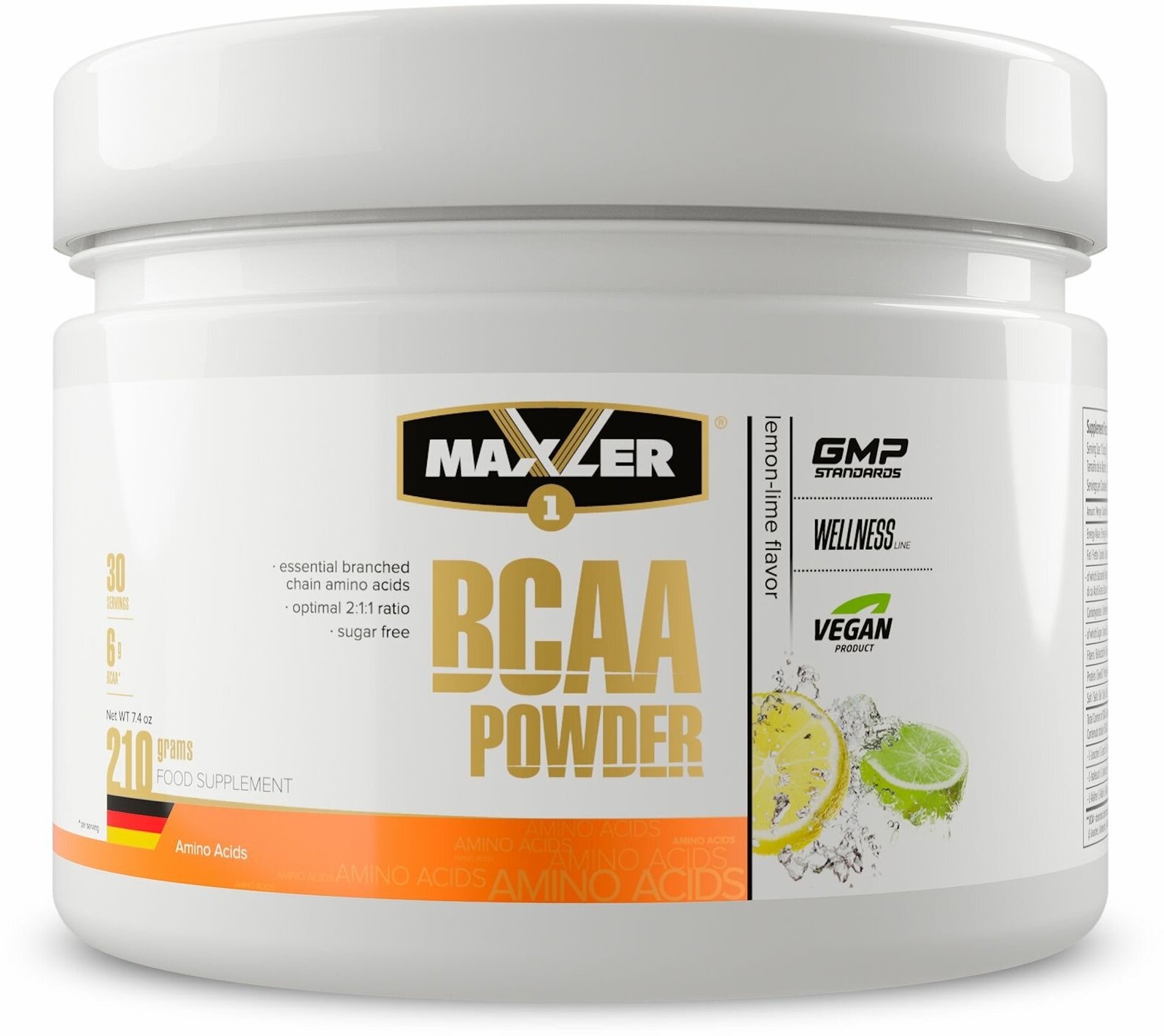 Аминокислоты Maxler BCAA Powder - Лимон-лайм, 210г - БЦАА в соотношении 2:1:1 - Отличная растворимость - Приятный вкус