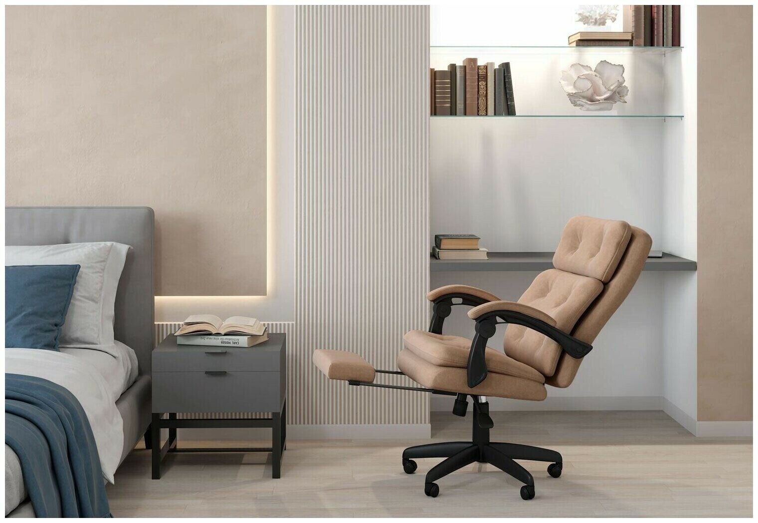 СохранитьКомпьютерное кресло для дома и офиса с подставкой для ног CHAIRMAN HOME 442, велюр, бежевый интересное: