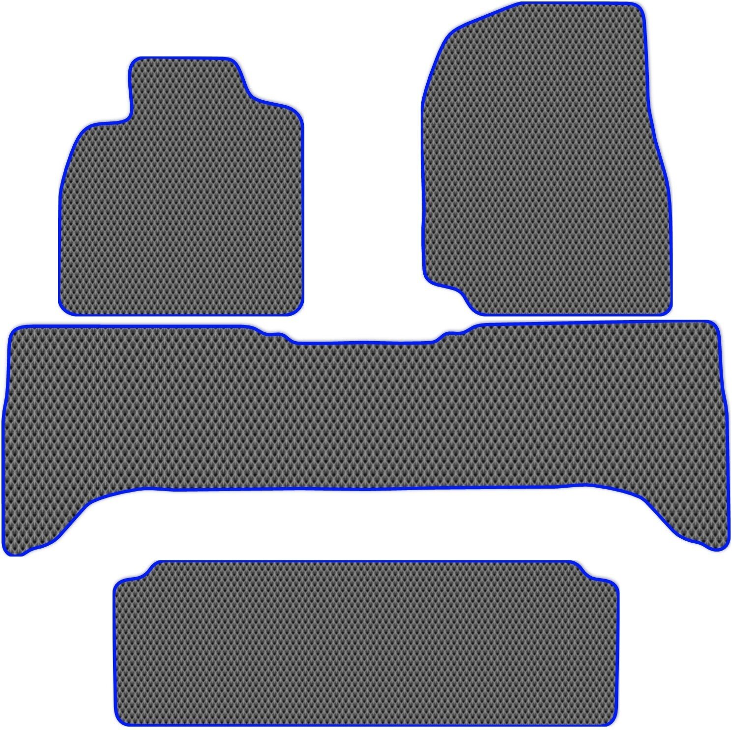Коврики ЭВА Allmone для Toyota Land Cruiser X (100) (2002 - 2007) +3 ряд, серые с синим кантом, 4шт. / Тойота Ленд Крузер / EVA / ЕВА