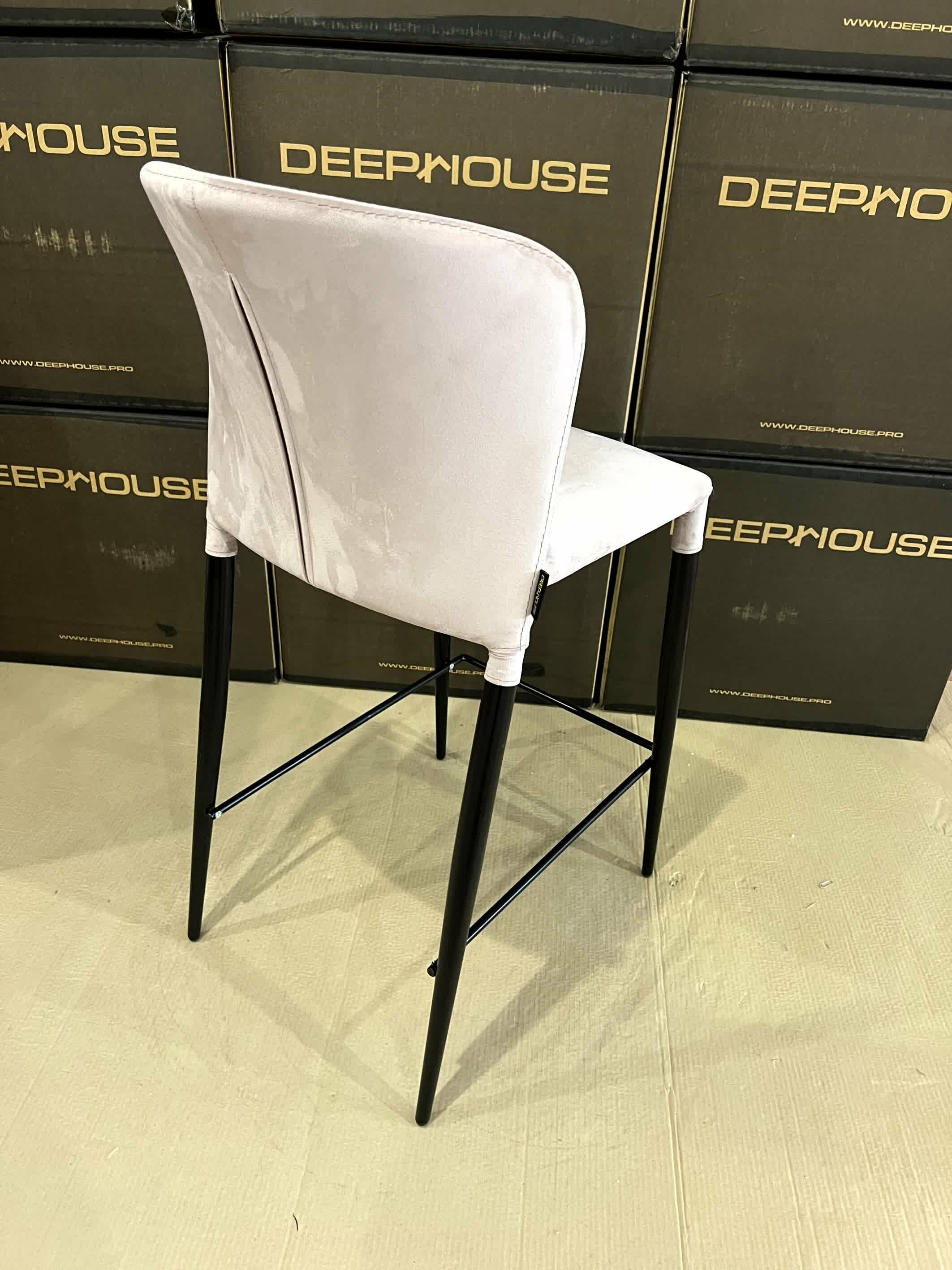 Стул полубарный DeepHouse Стул Орли серый бархат ножки и подножка черные для дома/для гостиной/для столовой/для кафе /кухонный стул/стул кухонный