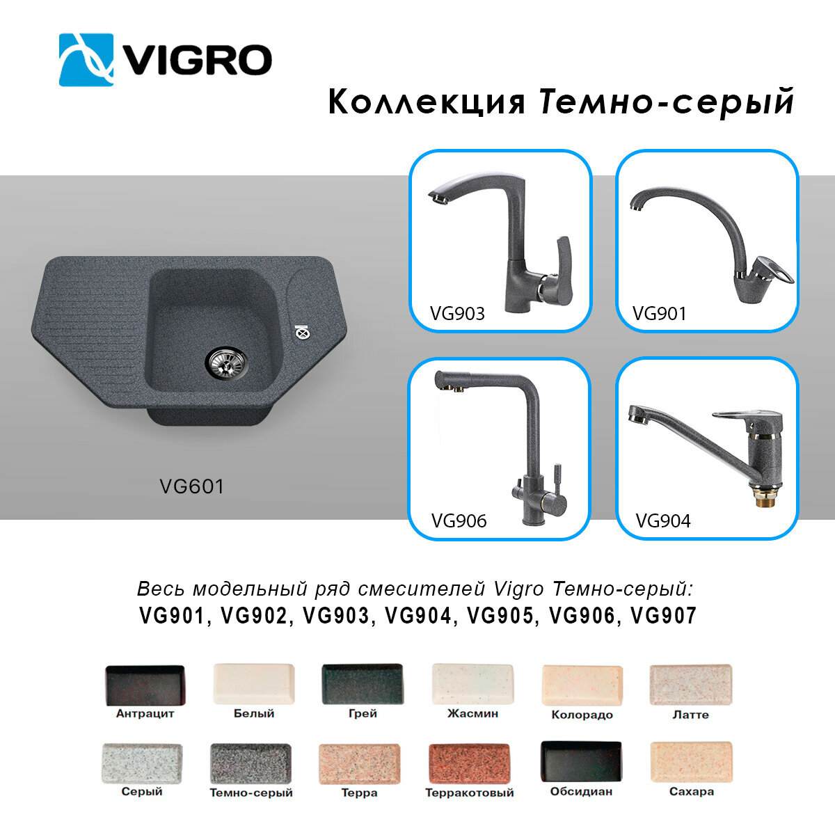 Ниже Вы можете прочитать отзывы на Мойка кухонная врезная Vigro VG601 темно-серый (777*485*180), ознакомится с подробными характеристиками, посмотреть интересные обзоры и фотографии на Мойка кухонная врезная Vigro VG601 темно-серый (777*485*180).