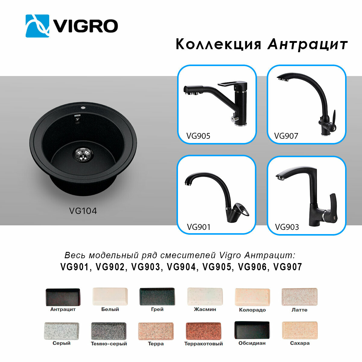 Ниже Вы можете прочитать отзывы на Мойка кухонная врезная Vigro VG104 антрацит (505*505*210), ознакомится с подробными характеристиками, посмотреть интересные обзоры и фотографии на Мойка кухонная врезная Vigro VG104 антрацит (505*505*210).