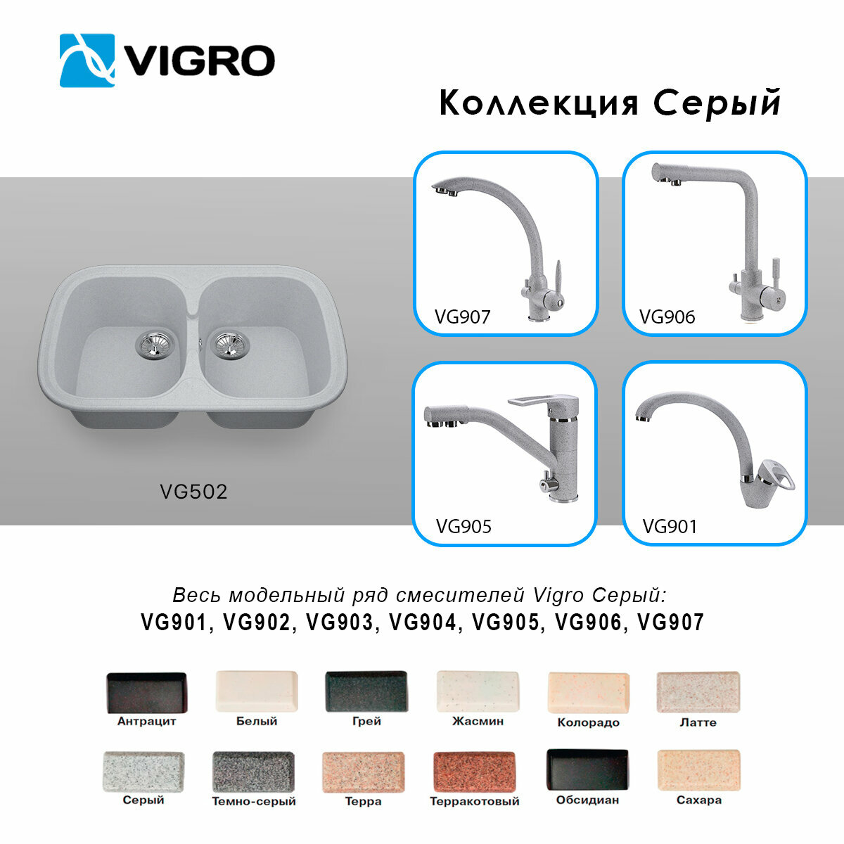 Ниже Вы можете прочитать отзывы на Мойка кухонная врезная Vigro VG502 серый (780*495*200), ознакомится с подробными характеристиками, посмотреть интересные обзоры и фотографии на Мойка кухонная врезная Vigro VG502 серый (780*495*200).