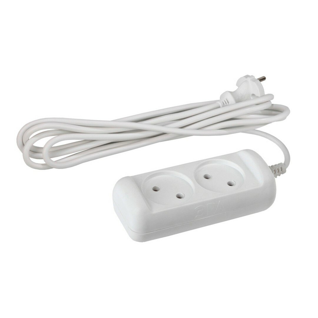 Удлинитель 2-мест 5м ПВС 2*0,75 белый ЭРА