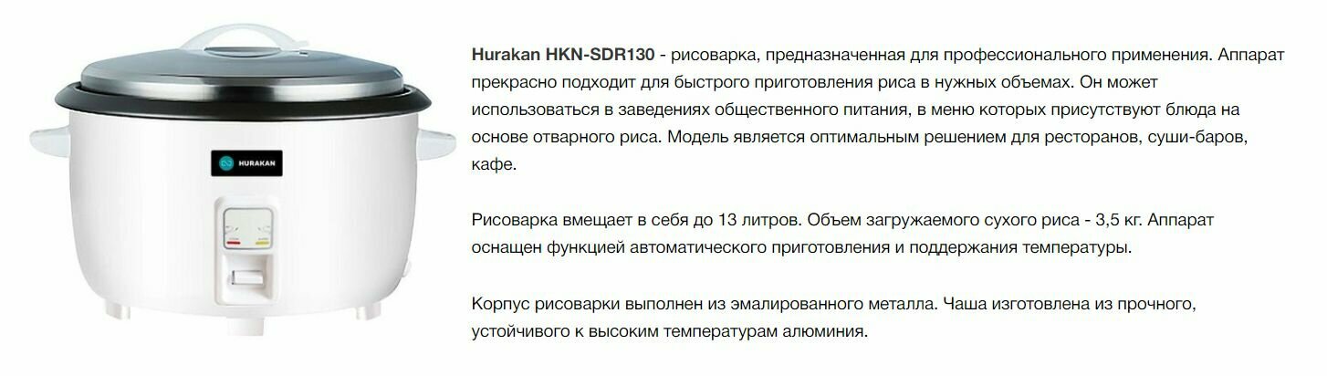 Купить Hurakan Рисоварка Hurakan HKN-SDR130