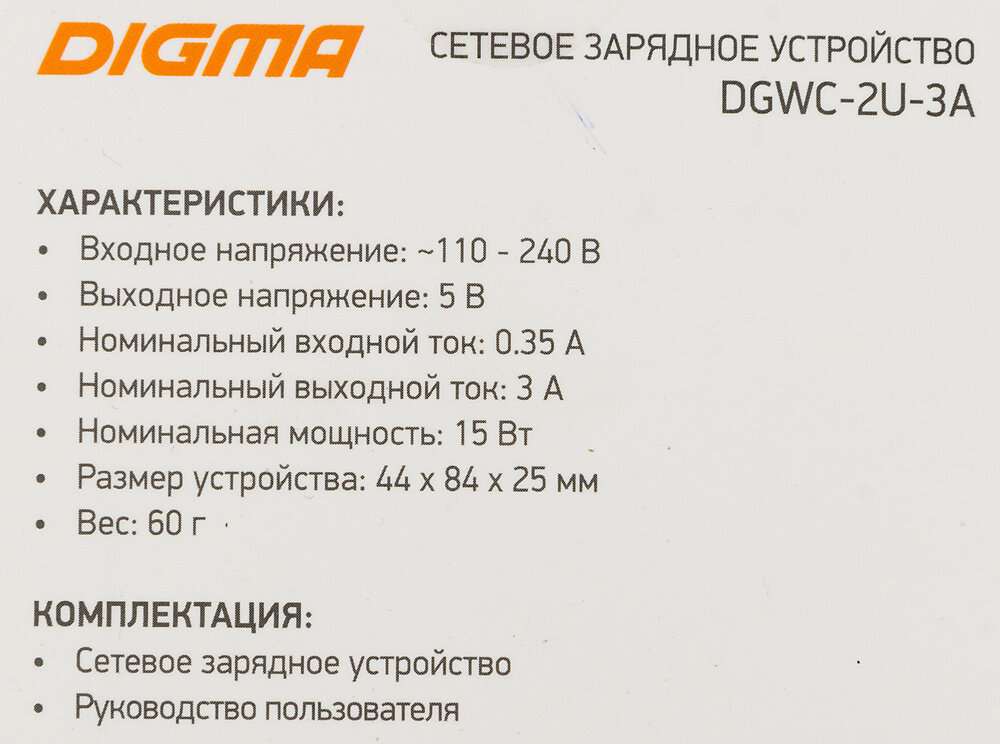 Ниже Вы можете прочитать отзывы на Сетевое зар./устр. Digma DGWC-2U-3A-WG 15W 2.1A+1A 2xUSB универсальное белый, ознакомится с подробными характеристиками, посмотреть интересные обзоры и фотографии на Сетевое зар./устр. Digma DGWC-2U-3A-WG 15W 2.1A+1A 2xUSB универсальное белый.