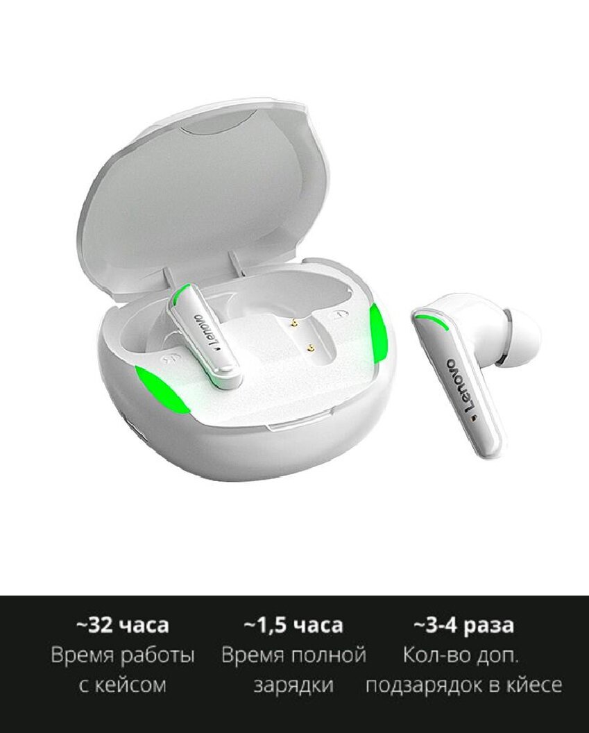 Беспроводные наушники Lenovo XT92 True Wireless Earbuds (White) интересное:
