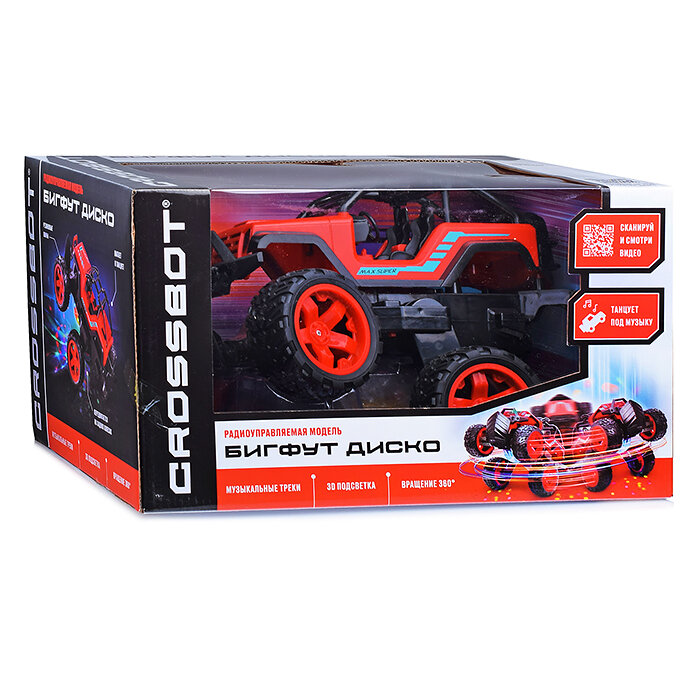 Машинка на радиоуправлении Crossbot Бигфут Диско танцует, 3D подсветка, красный