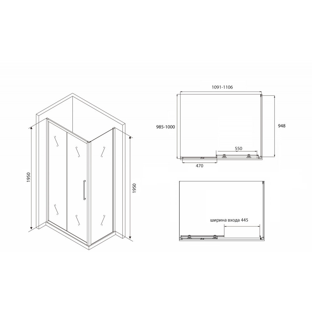 Душевой уголок Abber Schwarzer Diamant 1100х1000 мм (габариты площадки) AG30110BH-S100B