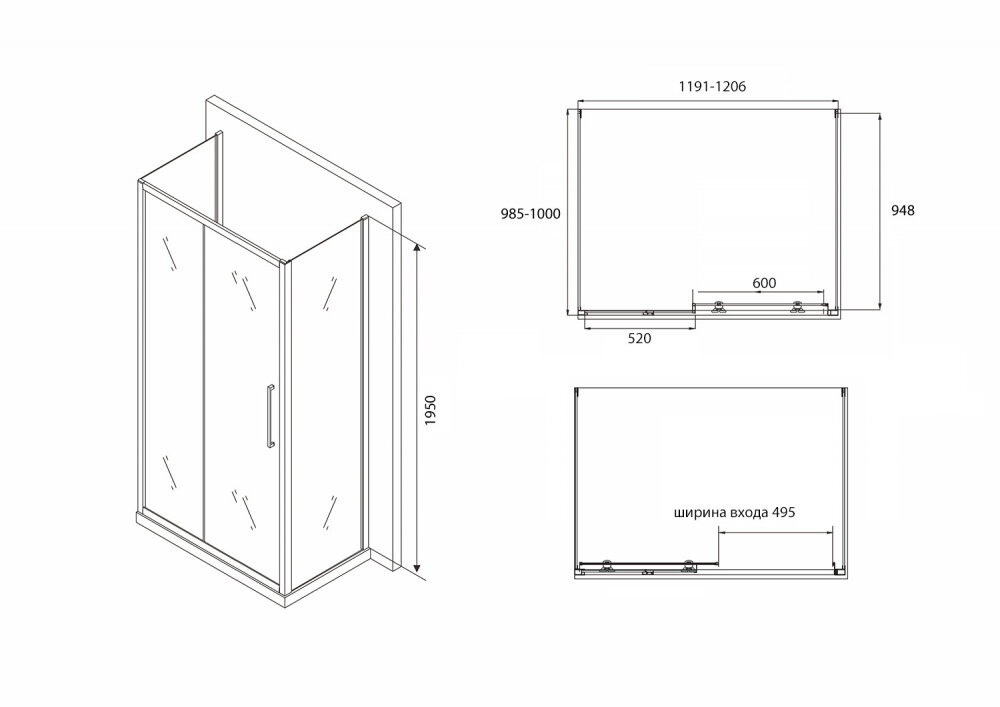 Душевое ограждение Abber Schwarzer Diamant AG30120BH-S100B-S100B