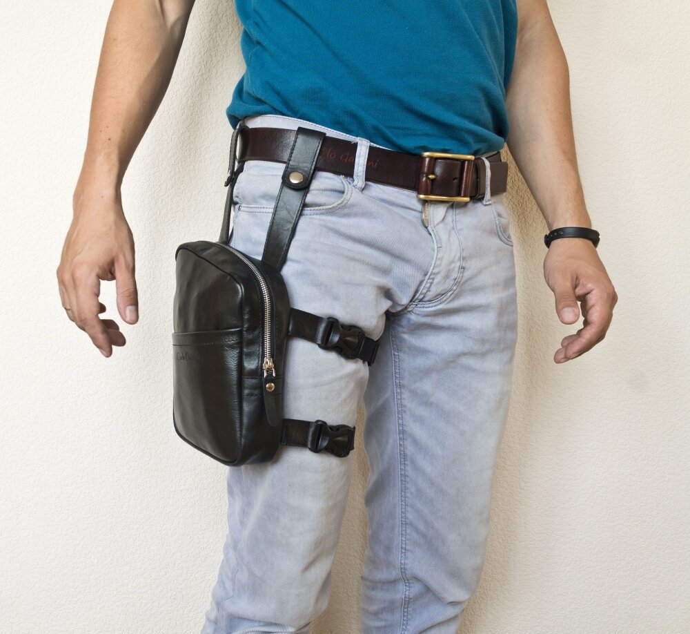 Набедренная мужская кожаная сумка Carlo Gattini Salter 7501-01 черная