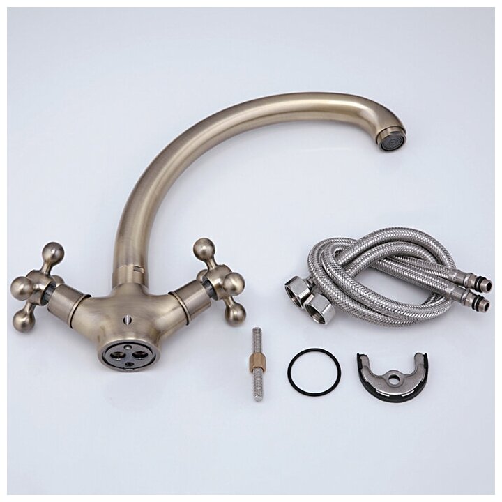 4219-4 Смеситель Кухня Frap Крест LUX MAXI м/к (бронза)